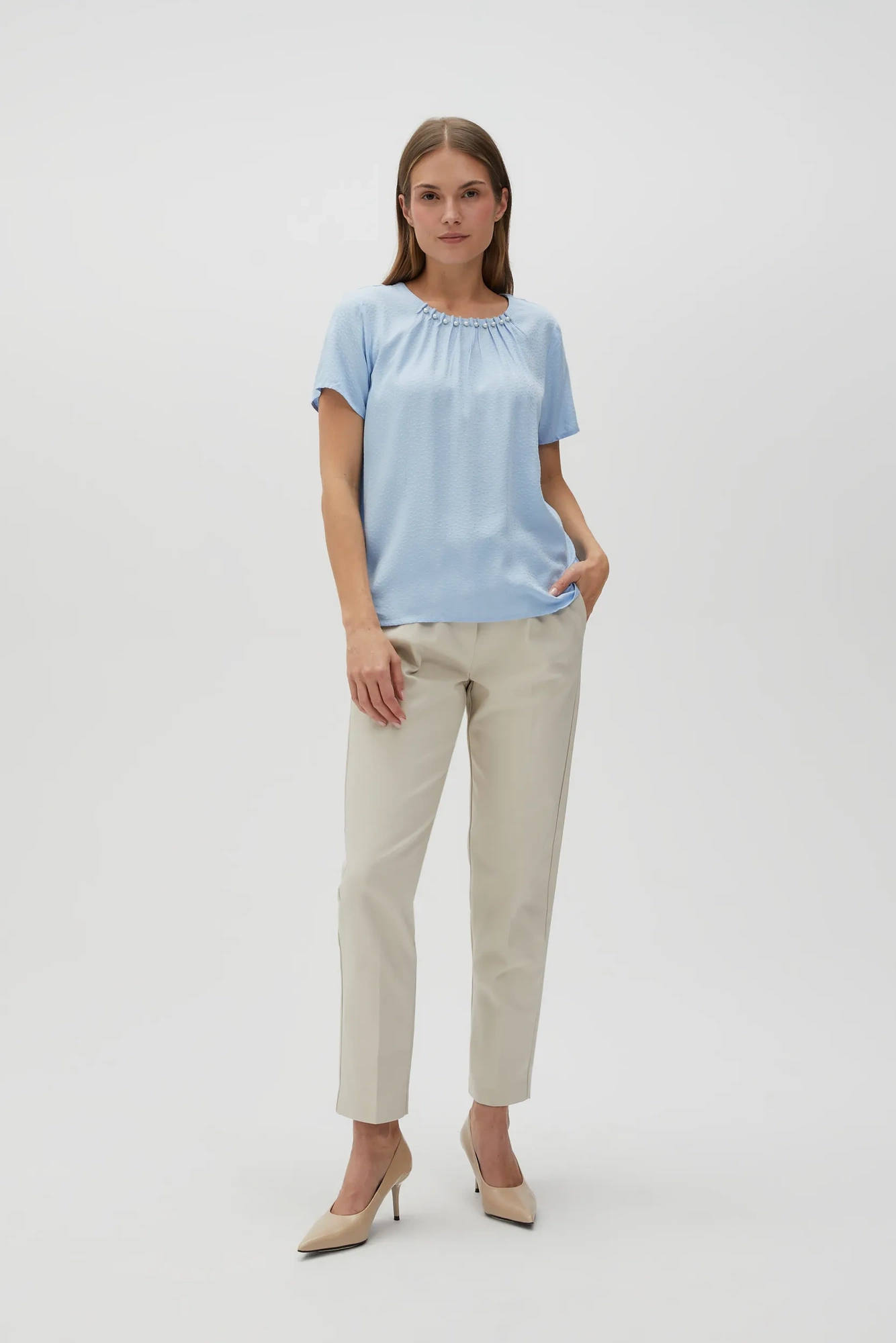 BLUZKA DAMSKA Z OZDOBNYM DEKOLTEM, ROZMIAR S